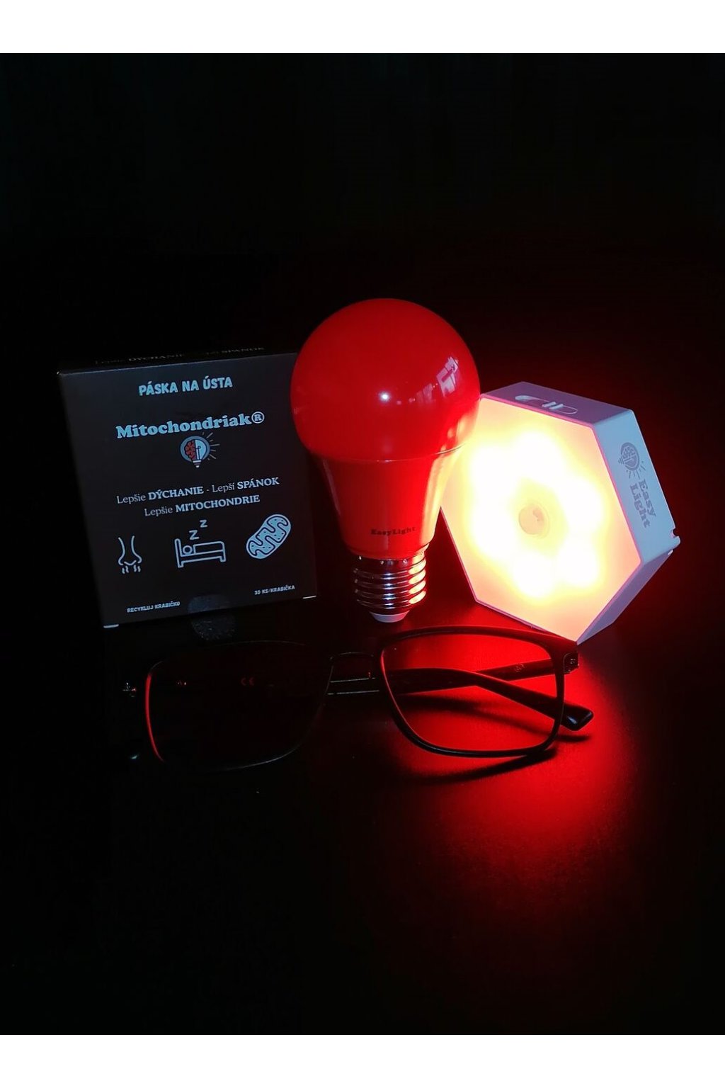 | Množství brýlí v balení: | Balíček Mitochondriak starter (single) obsahuje 1x brýle Mitochondriak pro lepší spánek |