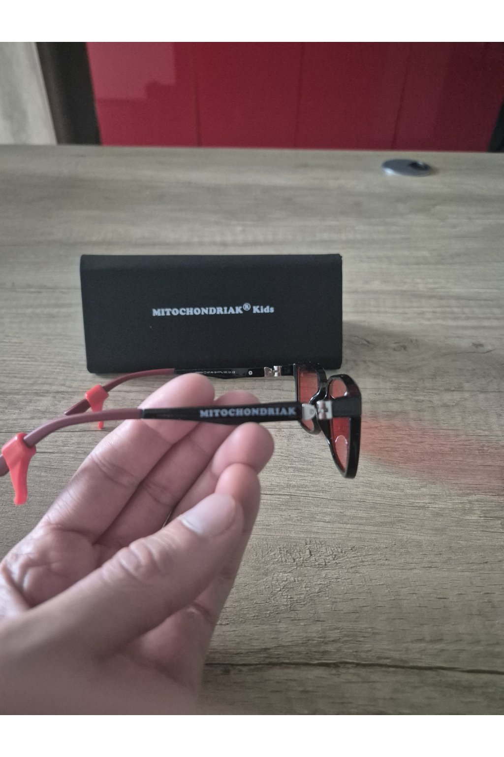 Naše dětské brýle Mitochondriak® jsou navrženy tak, aby byly co nejvíce praktické a estetické (vhodné i ven, do restaurace, obchodu nebo kamkoli do společnosti), ale zároveň účinné. Mají tmavá červená skla, která blokují modré i zelené světlo až do 550 nm.