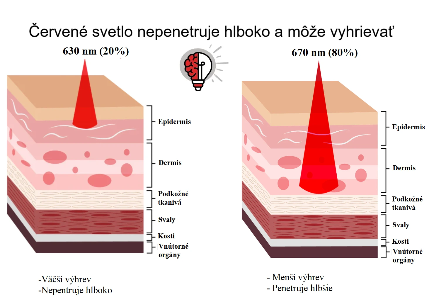 Červené světlo jako jediné ze spektra dokáže penetrovat lidské tělo několik centimetrů, a zasáhnout tak téměř každou mitochondrii i molekulu vody v těle, kolagen, fibroblast, fascie. Červené a infračervené světlo takto pomáhá našemu tělu produkovat více energie, vody a lépe se regenerovat!