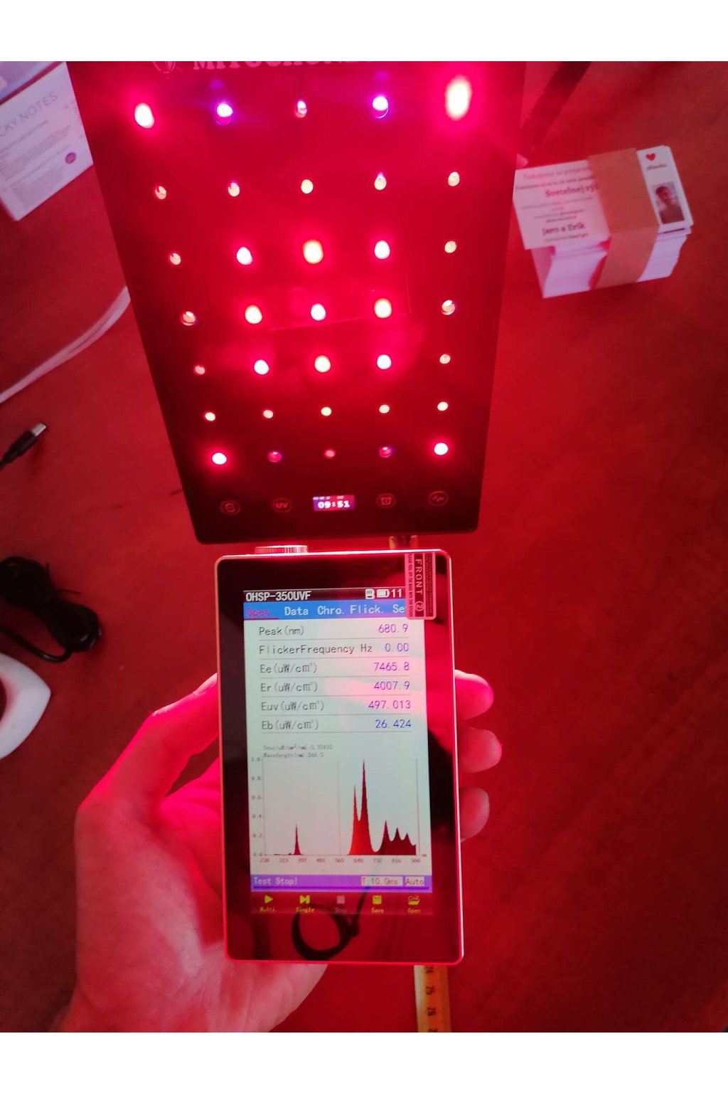 Meranie Flicker-u slnka a nášho panelu Mitochondriak od EasyLight (spektrometer UPRtek)