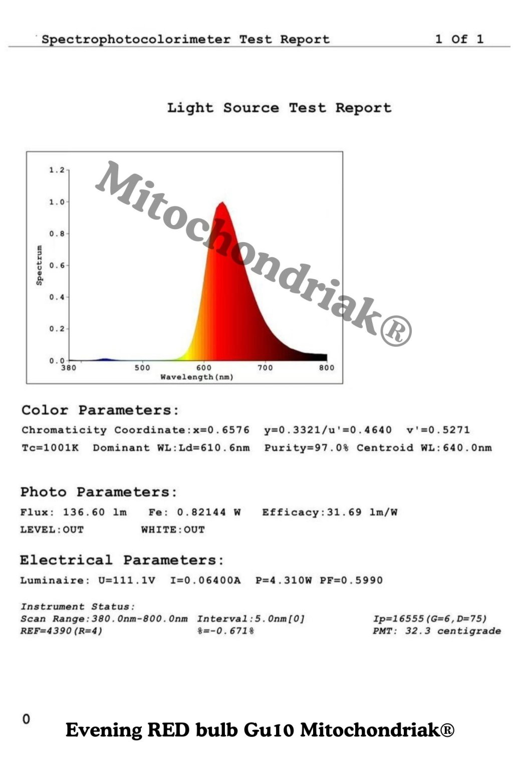 Naše červená žárovka GU10 Mitochondriak® neobsahuje žádné modré ani zelené světlo a má zero flicker (žádné podprahové problikávání).
